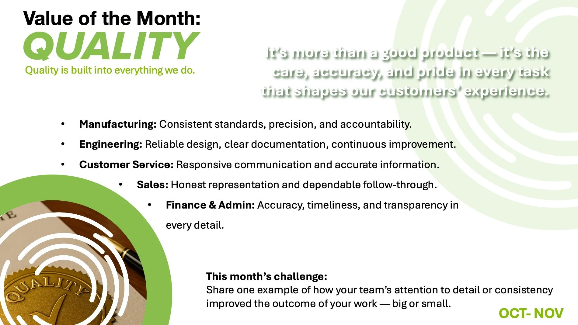 The monthly focus system was created to translate high-level values into ongoing, actionable moments throughout the year. Each focus highlights a specific theme, giving teams a clear and consistent way to engage with values over time rather than all at once.