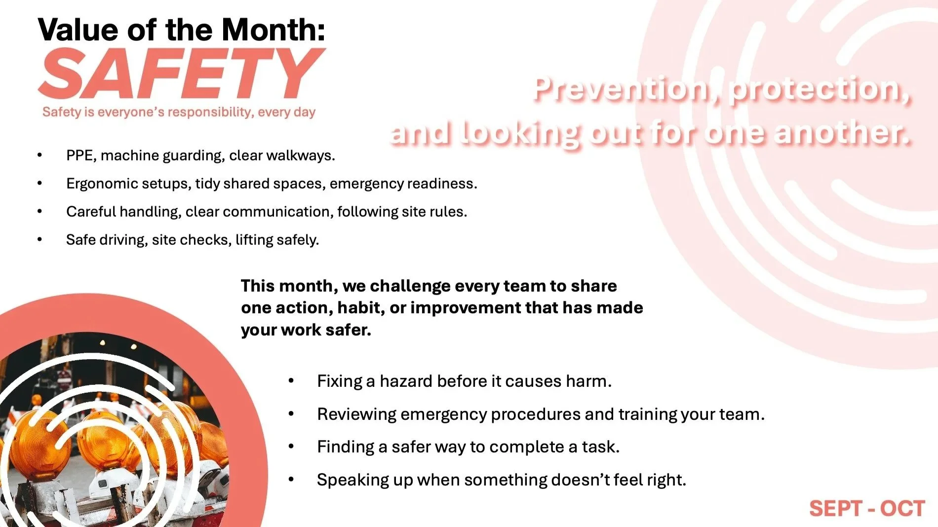 Signage was developed in both English and Spanish to ensure the messaging was accessible, inclusive, and representative of the people it was meant to serve. Providing bilingual communication reinforces clarity, safety, and respect, helping ensure that values are understood consistently across teams, roles, and work environments.